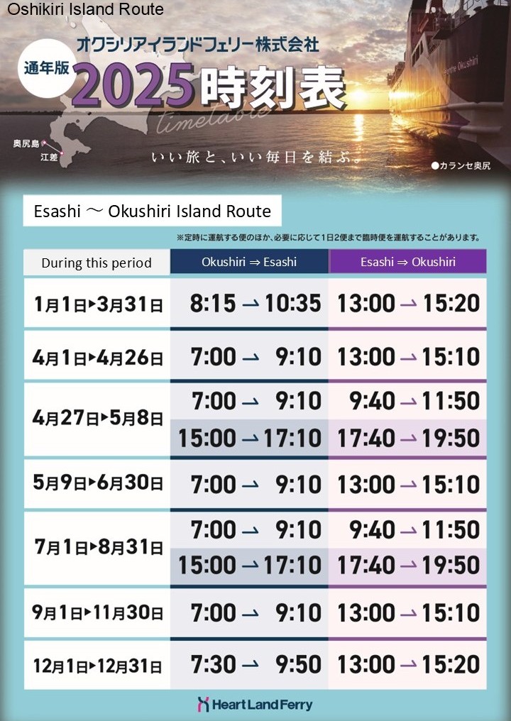 | 07:30~09:50 Calanthe Okushiri | Operation |